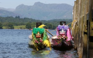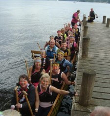 Six Port Edgar Dragons went to the first ever British Paddlers for Life Dragon Boat Regatta. What a spectacular setting Lake Windermere was for the event. A breezy morning we joined health workers from Lancashire to make up the very noisy and colourful team ‘Oarsome’. We were put through our paces in the warm ups – then out on to the water…… Timing is everything on a dragon boat and it took us a while to get into the rythym!